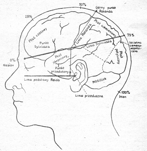 pół (50%) i uzyskujemy czubek puszki mózgowej,