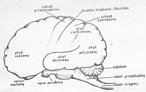 na powierzchni głowy strefy przebiegu bruzdy; Rolanda wraz z