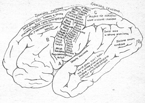 czuciowej, rozmieszczonej wzdłuż bruzdy Rolanda przy pomocy